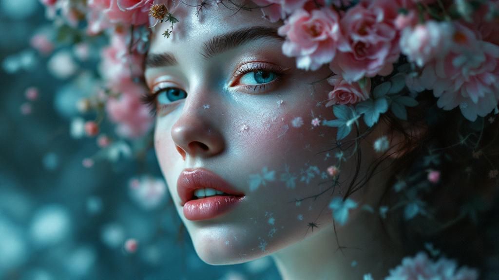 This commitment to enhancement manifests most powerfully in their portrayal of public personalities and cultural icons. Brad Pitt appears delicate and exposed; Bill Murray comes across contemplative with botanical elements adorning his features; Drew Barrymore is presented with an intensity that transcends conventional beauty photography. These images refuse simple classification, existing instead in a undefined realm between individuality and projection. The figures remain recognisable yet fundamentally altered, transformed through Inez and Vinoodh’s collaborative vision into something altogether more complex and visually arresting than standard celebrity photography usually produces.